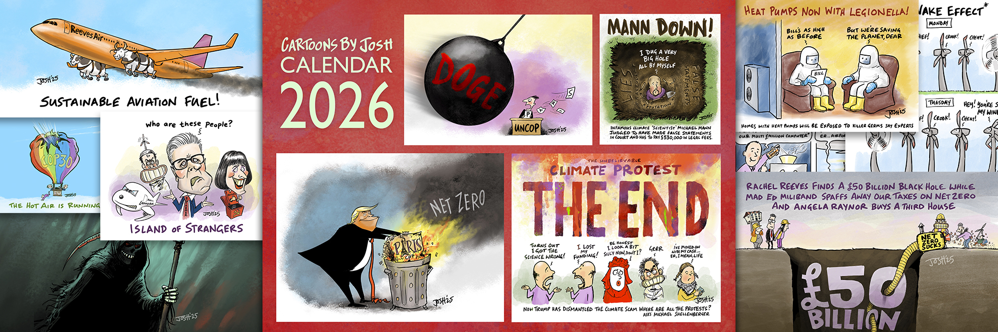 Calendars! The 2026 calendar is in production – it’s a great way to remember the past year and keep hope alive in the coming year. I was impressed by the print quality of the US version of the calendar last year (printed by Lulu) so I am focusing on their online print-on-demand format this year. The size is US Letter (21 cms x 28 cms), opening to double that in size (42 cms x 28 cms ), with half devoted to the cartoons and the other half a dates page which includes US holidays. Most of the cartoons are about Net Zero, Energy, the Environment and Climate Change as well as UK and US politics. The link to Lulu will be here and on the Calendar page when it is up and running in the next week or so.